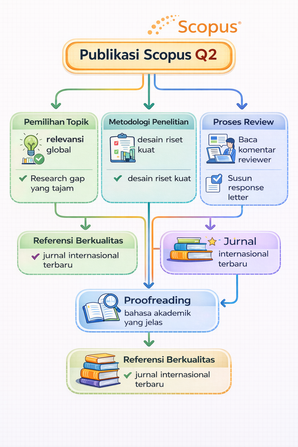 Untuk meningkatkan peluang diterima pada jurnal Scopus Q2, peneliti perlu menerapkan strategi tertentu dalam menyusun dan mengirimkan artikel ilmiah. Strategi ini tidak hanya berkaitan dengan kualitas penelitian, tetapi juga dengan cara penulis menyajikan hasil penelitian agar sesuai dengan standar jurnal internasional.